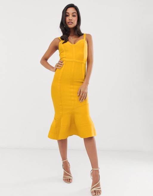 Asos Design Tape Detail Bandage Asymmetric Hem Midi Dress Asos